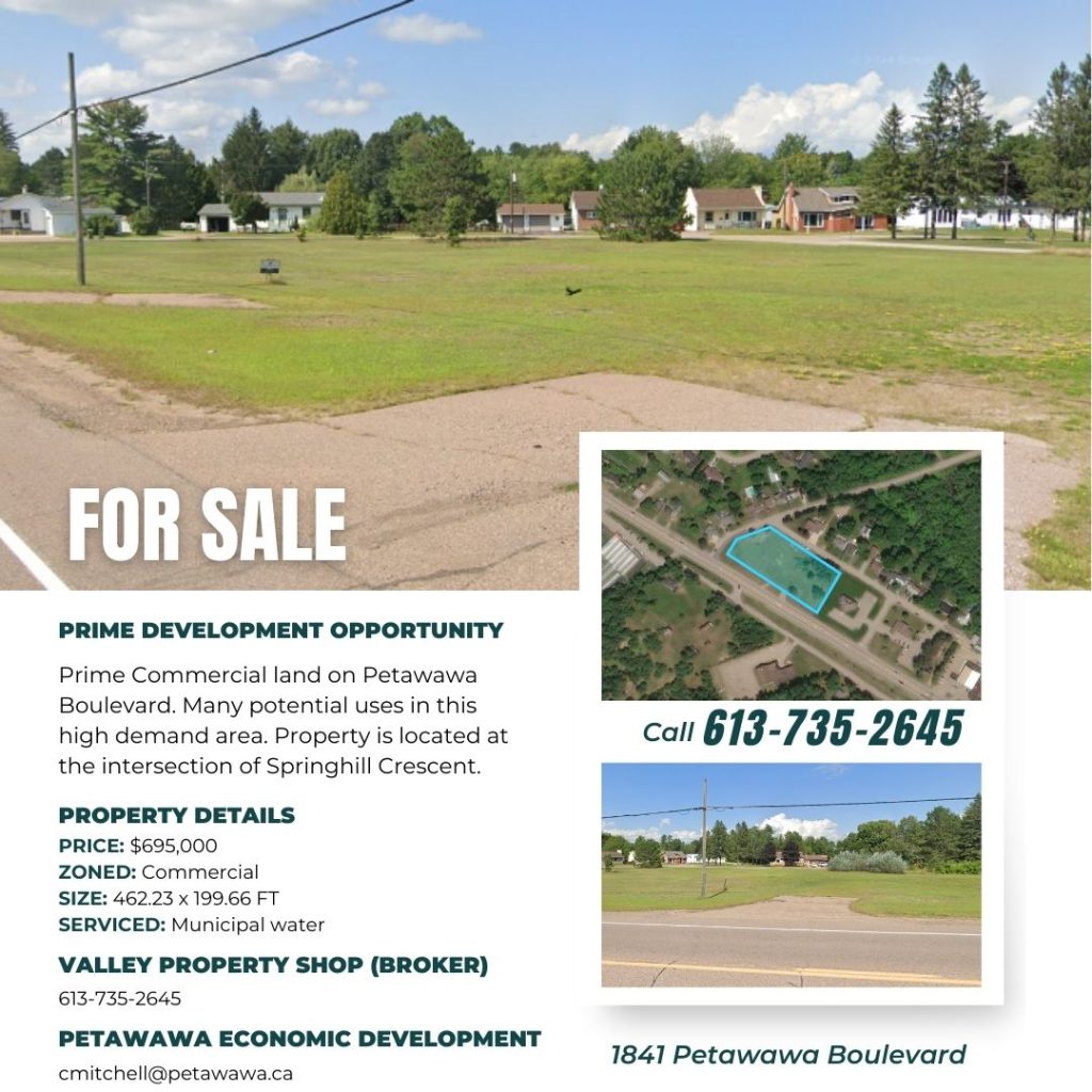 A vacant 1.98-acre lot, commercially zoned, located along a busy entrance corridor in the Petawawa community. Was a former motel business that was demolished after many years of neglect.