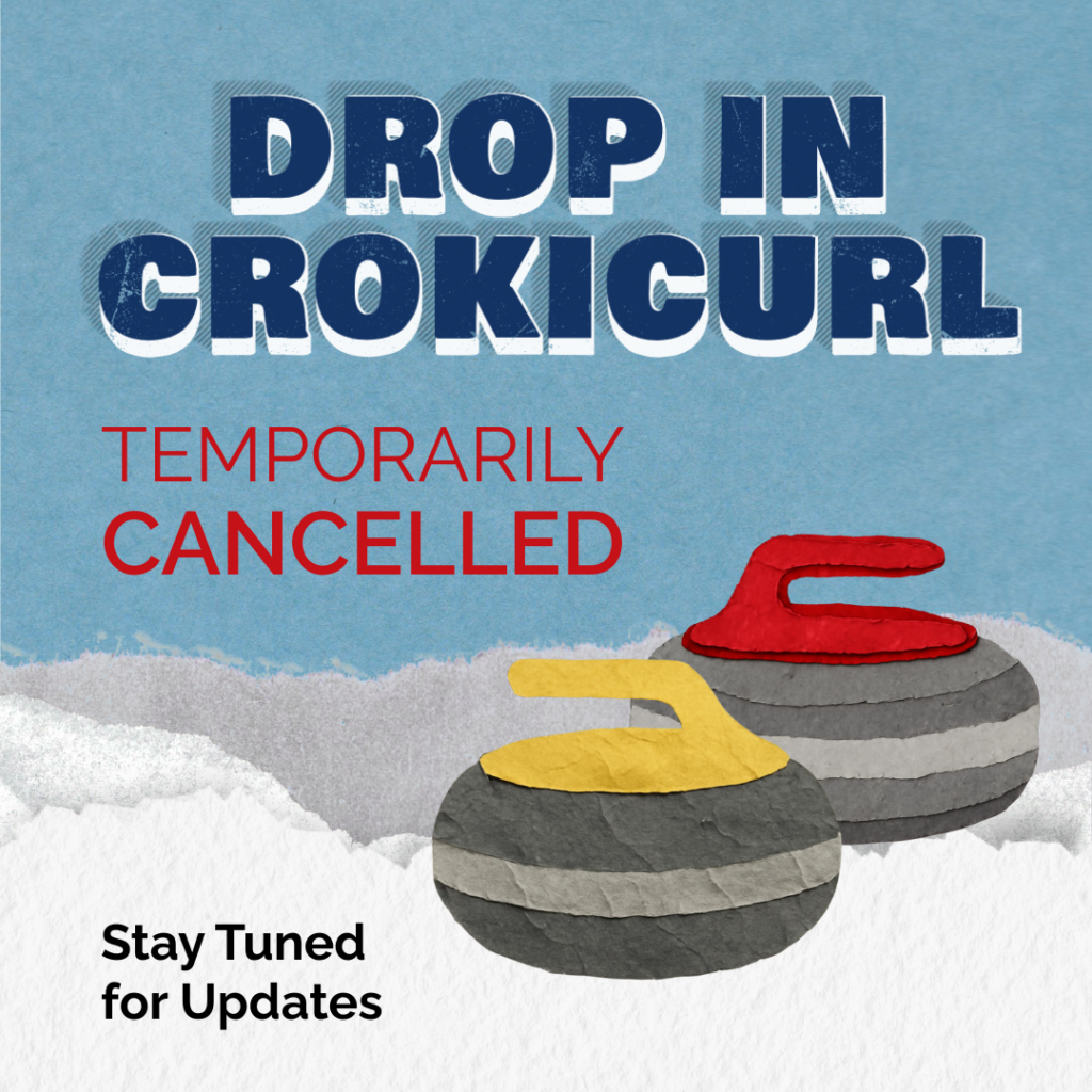 Please note: Our drop‑in Crokicurl is temporarily unavailable. Due to the recent weather, the ice surface isn’t ready for play. Please stay tuned — we’ll share updates as soon as the rink is back up and running.