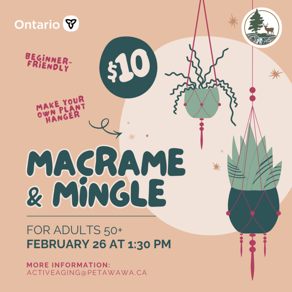 Beat the February chill with a warm, creative gathering for adults 50+. This beginner-friendly workshop will go over simple macrame techniques to help you create your own plant hanger to take home with you. Coffee, tea and friendly conversations all included!