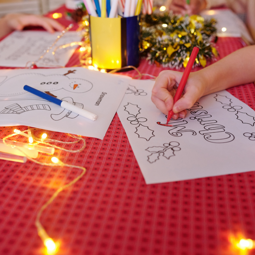 A kids’ Christmas party with a twist of giving parents time for last-minute shopping. At the party, children engage in festive activities such as holiday crafts and games. This includes a pizza supper.