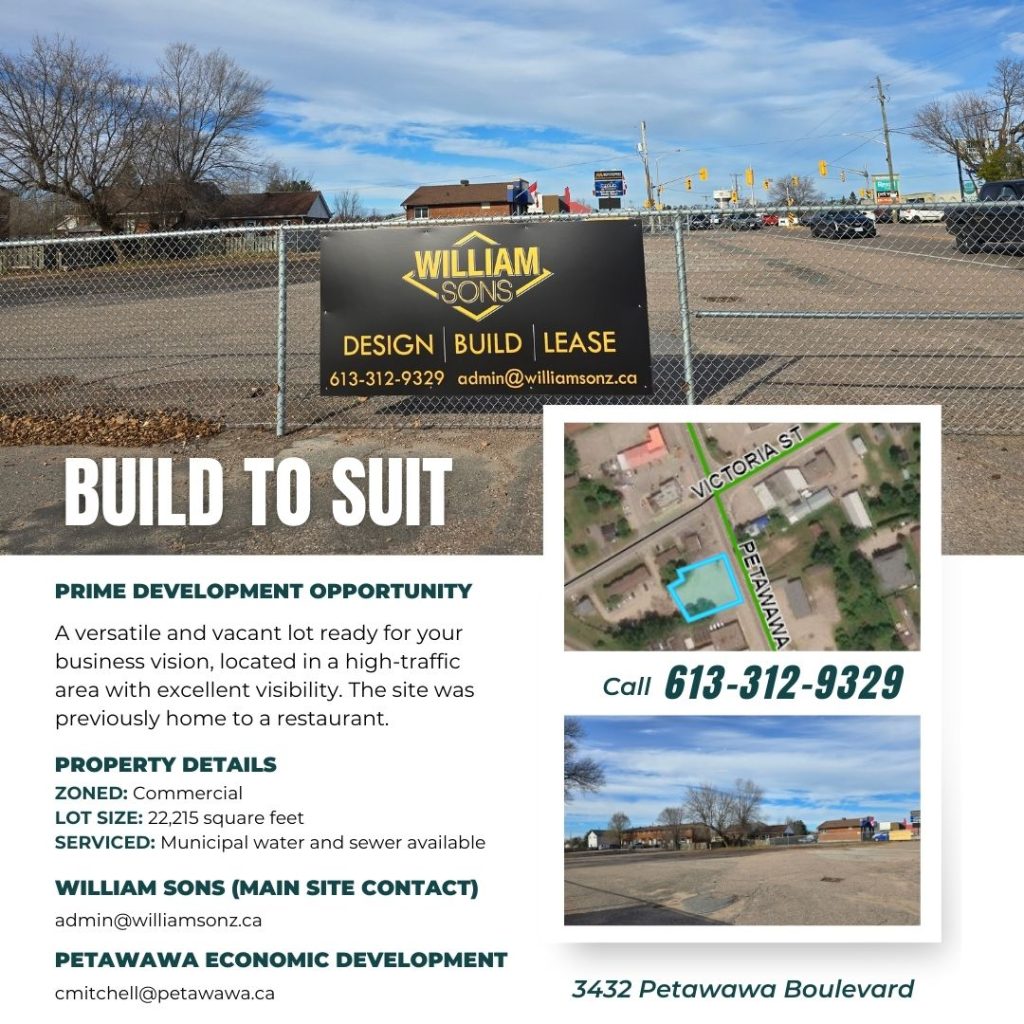 Discover the ideal location for your business at 3432 Petawawa Boulevard, a premium build-to-suit property in Petawawa. This vacant property is perfect for businesses looking to establish or expand in a high-growth, dynamic community.