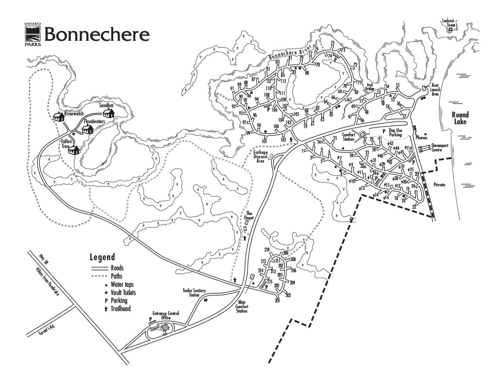 Come discover the inviting natural beauty of Bonnechere Provincial Park! Whether you’re looking to pitch a tent or park your trailer, you’ll find comfortable camping in one of our three campgrounds: Tall Pines, River Loop, and Sandy Flats.