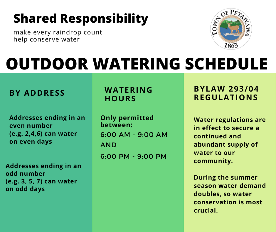 The Town of Petawawa reminds residents that regulations are in effect to secure a continued and abundant supply of water to our customers. By-law 293/04 states;